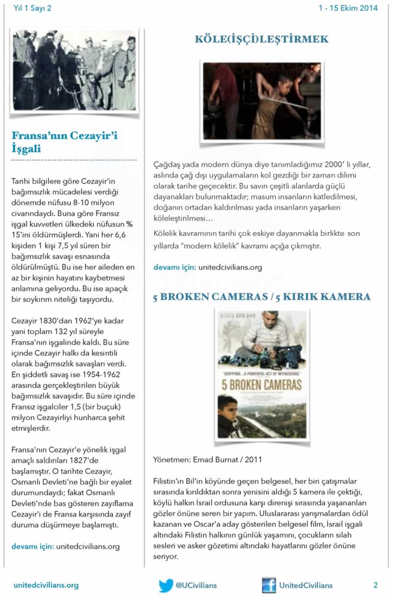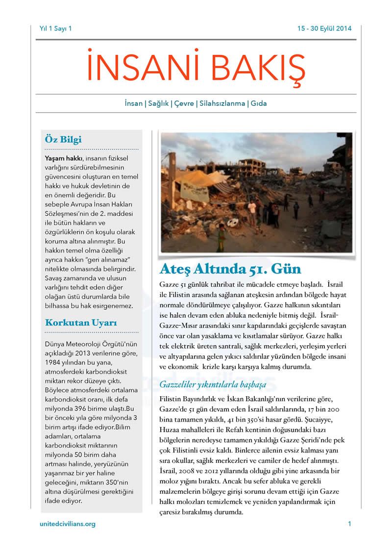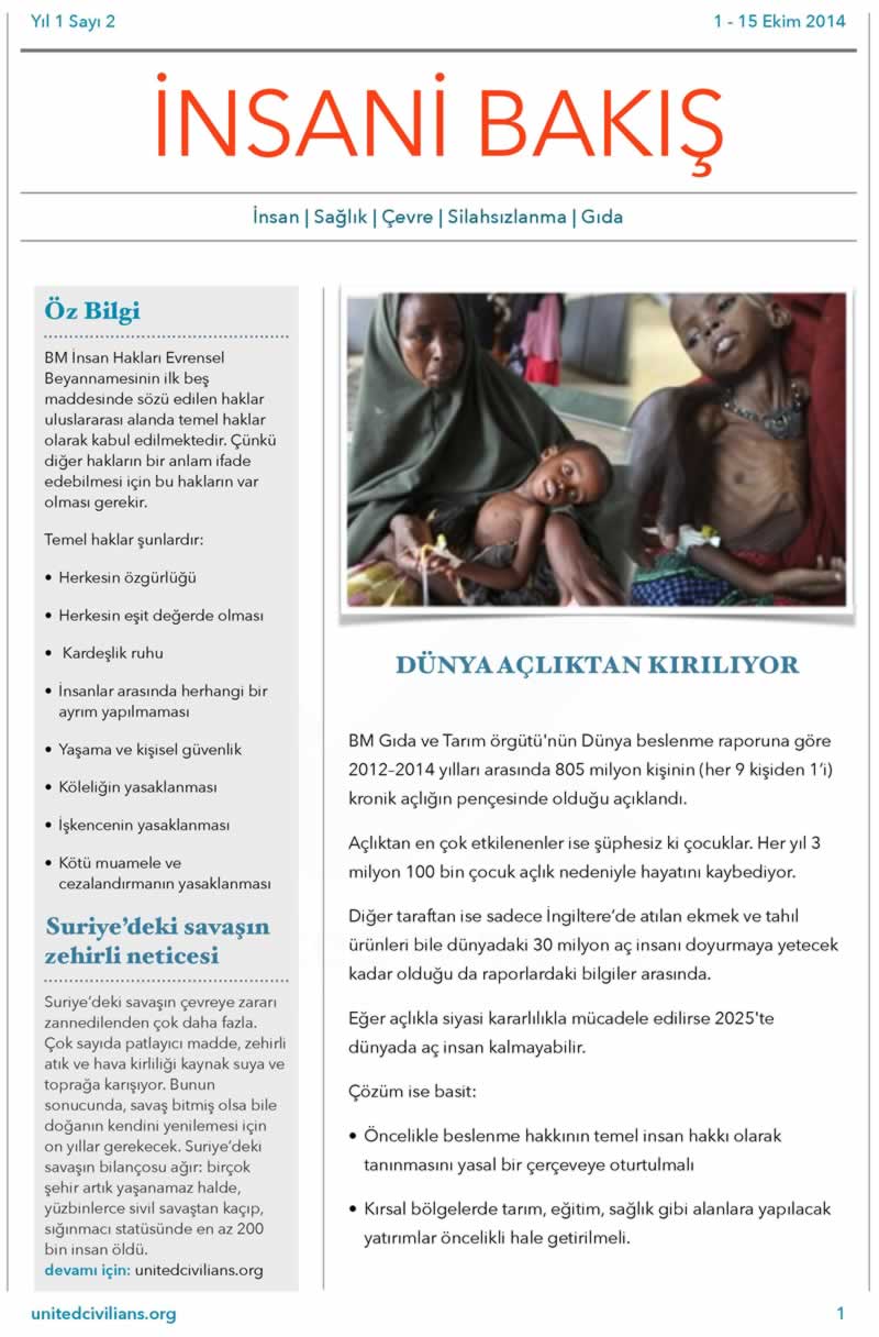 United Civilians (Birleşmiş Siviller)’in her 15 günde bir yayınladığı “İnsani Bakış” bülteninin 2. sayısı yayınlandı. Bültene kaydolmak için info(@)unitedcivilians.org adresine mail atmanız yeterlidir.