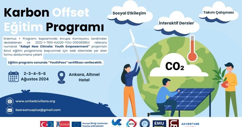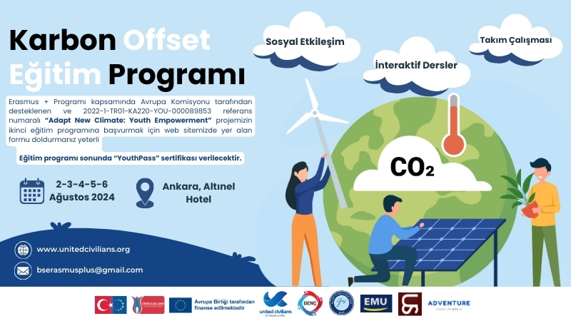 İklim değişikliği ile mücadelede bireylerin ve toplumların kapasitesini ve farkındalığını artırmayı ve güçlendirmeyi amaçladığımızarasında “Climate Carbon Offset Camp / Karbon Ofset Eğitim Programı” ile “İklim Değişikliğine Uyum” konusunda gençlere yönelik teorik olarak daha fazla bilgi edinebilecekleri kapasite geliştirme eğitimleri ile bireysel farkındalık yaratma, akran öğrenimi ve bilgi transferi sağlama ile adaptasyon sürecine hazırlık gibi genel ve özel hedefler doğrultusunda uzman eğitmenlerimiz tarafından sertifikalı eğitim verilecektir.