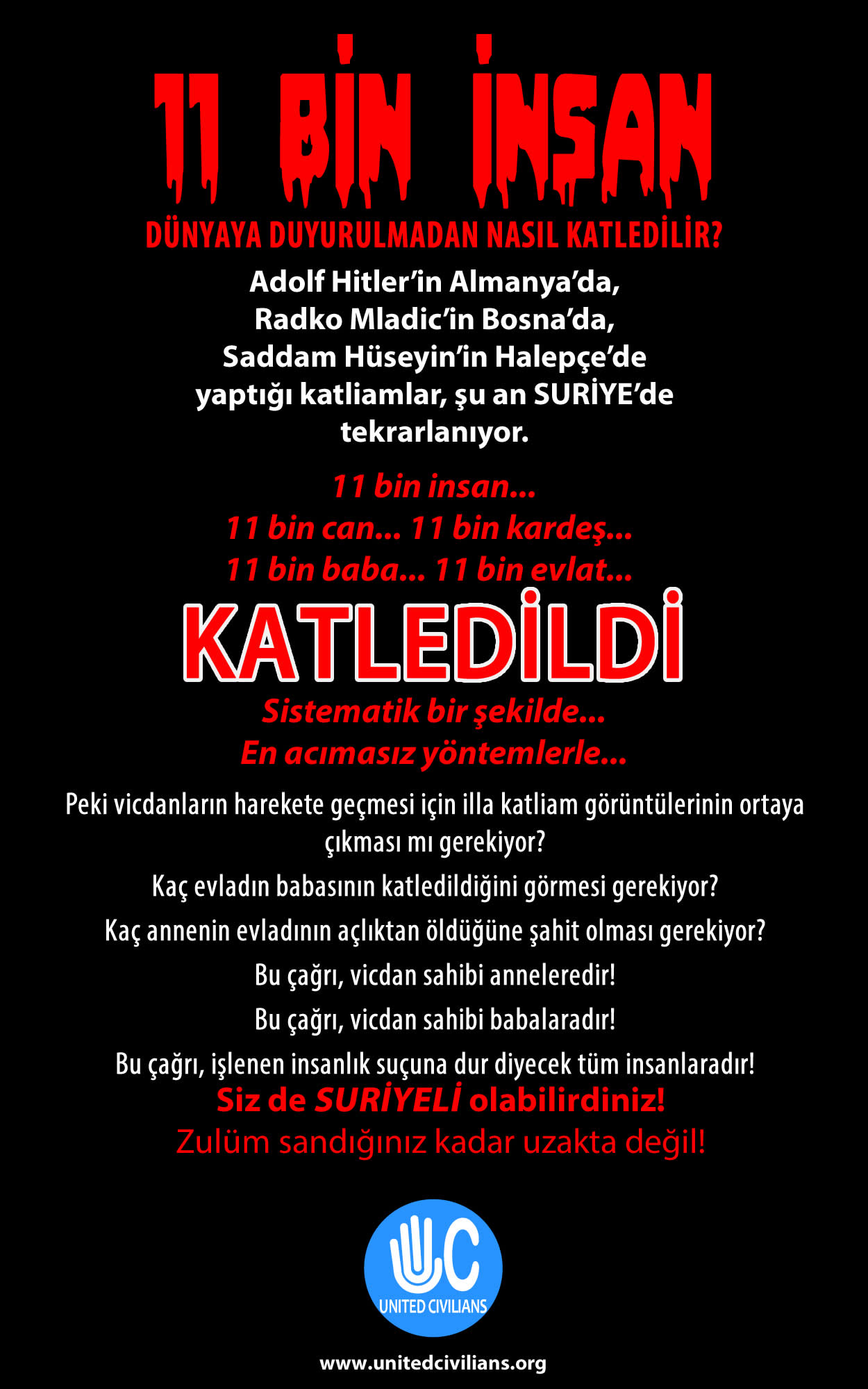 United Civilians (Birleşmiş Siviller) Hareketi sistematik işkence yöntemleriyle yaklaşık 11 bin kişinin görüntülerine ulaşılmasının ardından bunları Ankaralılara izletti. Görüntüler dünyayı ayağı kaldırırken, katliamdan hiç haberi olmayanlar da vardı. Bugün akşam…